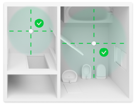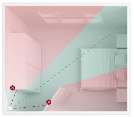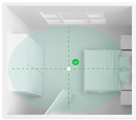Ceiling installation ensures optimal coverage, accurate detection, and stable operation of the Independent Living service. Proper placement prevents the sensor from detecting movement through open doors or from adjacent rooms, and ensures that its view is not blocked by furniture or open doors. This provides correct coverage in both open and closed rooms.