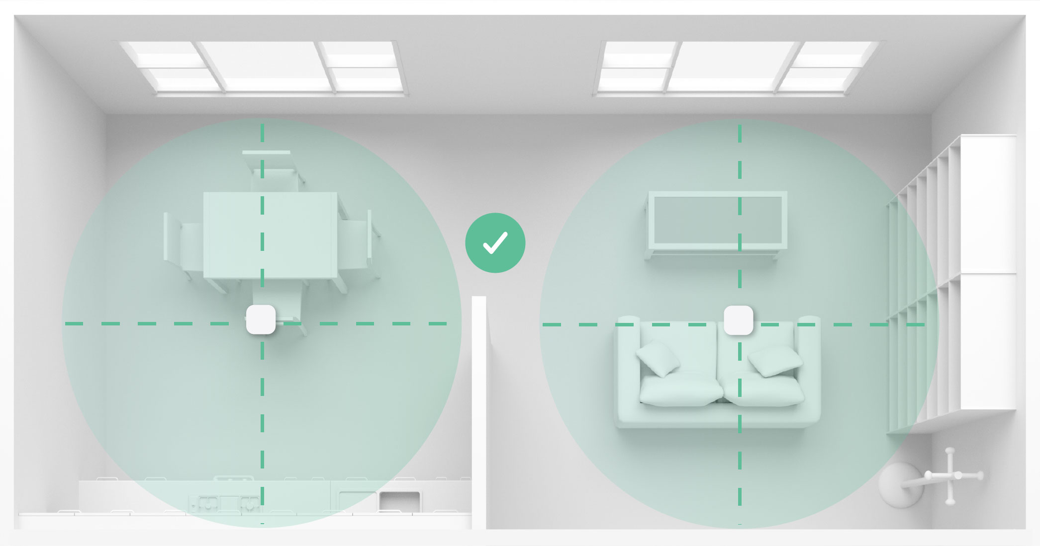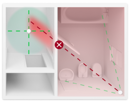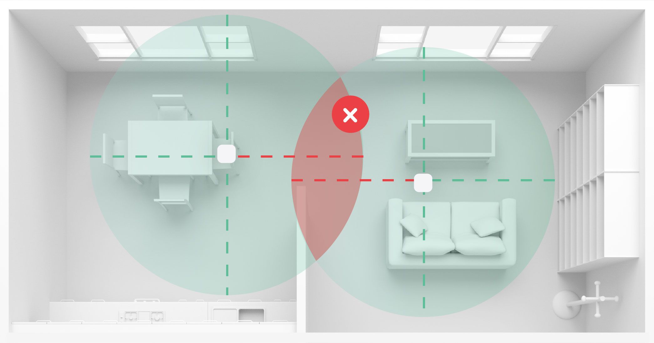 - Pass på at den ikke dekker områder utenfor rommet, for eksempel gjennom åpne døråpninger.
